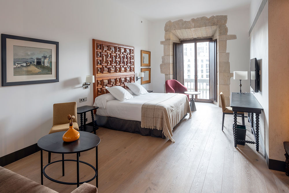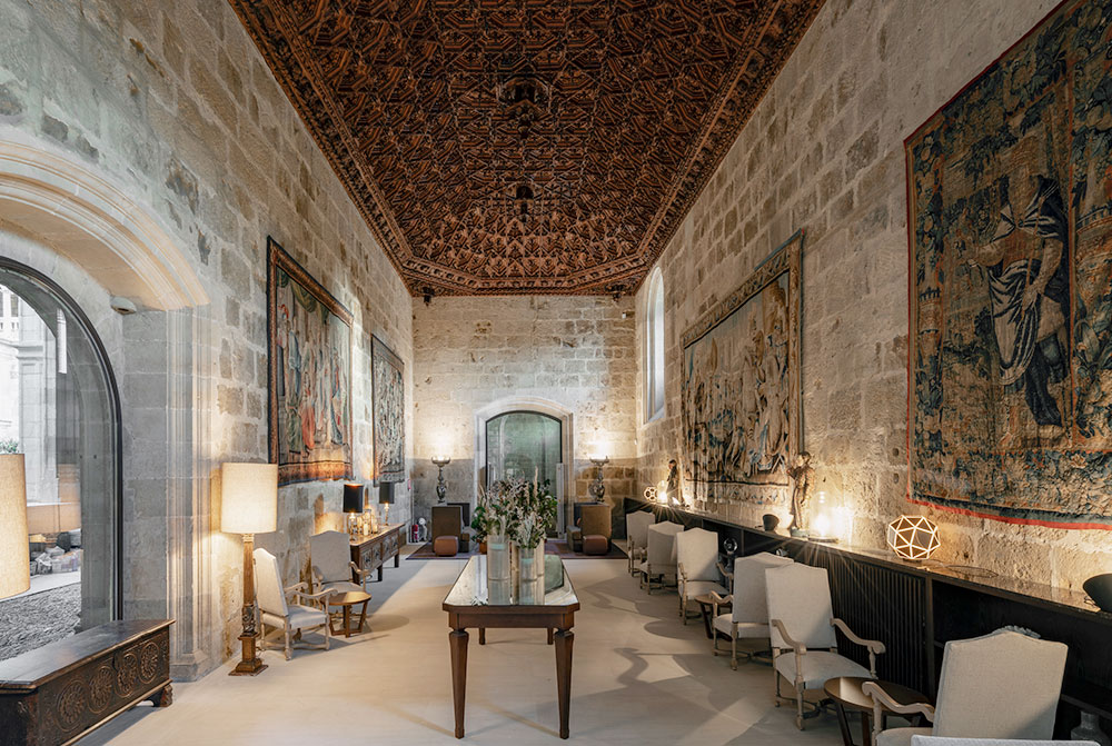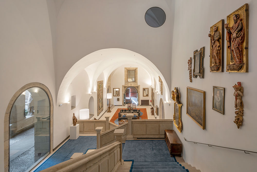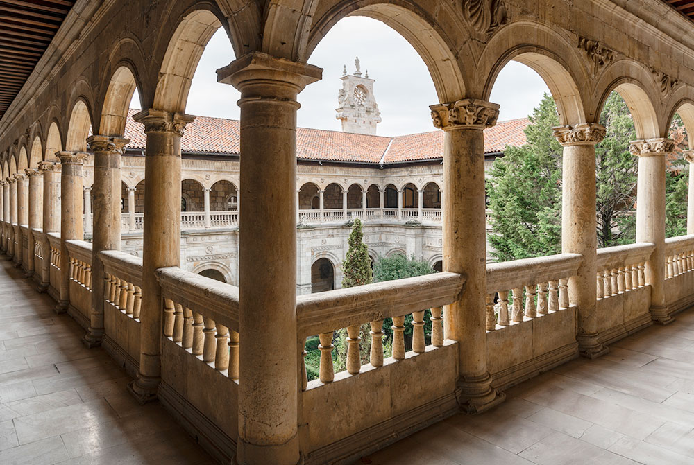 全パラドール中、最大かつ最も荘厳・華麗なパラドールと言えます。16世紀に建設が始まり、2世紀かけて建造された病院兼修道院で、プラテレスコ様式の装飾が施された、長さ100mにもおよぶ外観は圧巻です。回廊や教会など当時の姿を残す一方、客室や館内は注意深く念入りに改修され、美術品で見事に飾られています。パラドール一美しいと言われる玄関ロビー、風格あるサロン、回廊を見下ろすスイートルームなど、このパラドールで一夜を過ごすのは最高の贅沢と言えるでしょう。