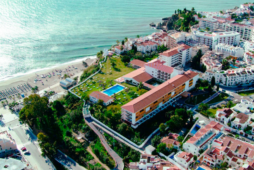 コスタ・デル・ソルのリゾート地ネルハは、地中海に面した断崖絶壁の町です。パラドールも断崖の上に建ち、専用エレベーターがパラドールと浜辺を結んでいます。