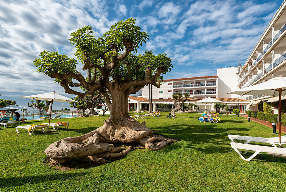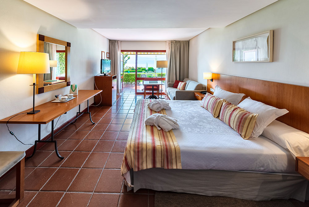 エントランスを入ると、緑鮮やかな植物が茂るパティオに広々した廊下、ゆったりと豪華なサロンが続きます。客室はエレガントに内装され、レストランからはテラス越しに真っ青な地中海が見渡せます。