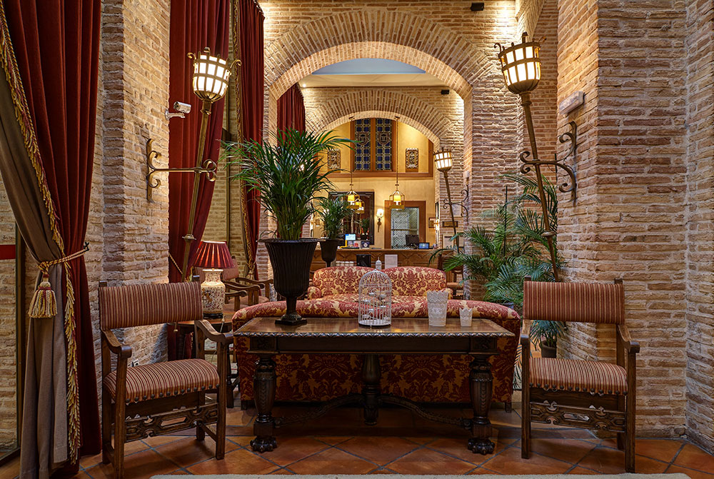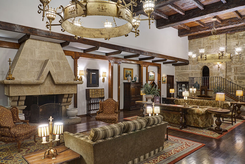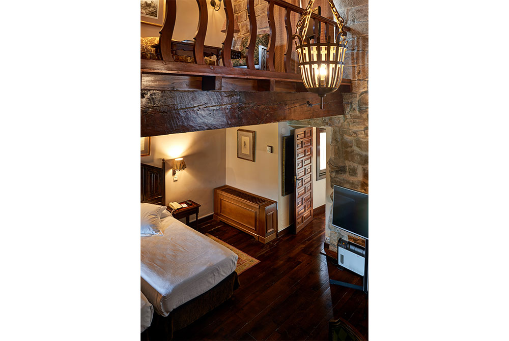 オリテの旧市街の真ん中に位置するパラドールです。15世紀に建造され、19世紀初め、ナポレオン軍との戦いで焼け落ち、廃墟となったものをパラドールとして再建。石造りの城壁に囲まれて、館内には中世の古城の雰囲気が見事に蘇っています。石壁が剥き出しで、天蓋付きベットが配された客室、ステンドグラスの窓や拱廊などで彩られたレストランと、中世にタイムスリップしたような気分にさせてくれます。