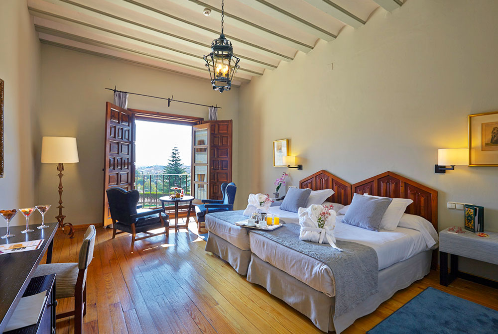 サモラはマドリードから北西へ250km、ドゥエロ川に面した風情豊かな街です。町の中心部に位置する15世紀のルネッサンス様式の宮殿がパラドールで、館内を飾る甲冑やタピストリー、ガラス張りの美しい回廊やパティオなど、中世の雰囲気に溢れています。大きく開かれた窓、ゆったりとした客室や回廊のサロン、庭園のプールなど、静かな佇まいの中、くつろいだひとときがお過ごしいただけます。
